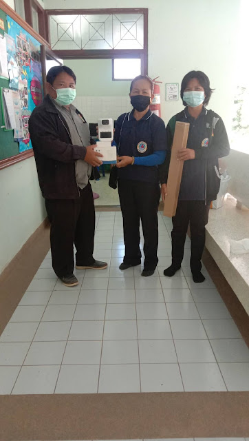 ผอ.รพ.สต.ธาตุน้อย นายพินิต บุญเพ็ง ส่งมอบเครื่องสแกนวัดอุณหภูมิหั้ยกับ ประธานอสม.ม.7 นางหนูกุน จันทะสิงห์ เผื่อนำไปใช้ประโยชน์ต่อไป